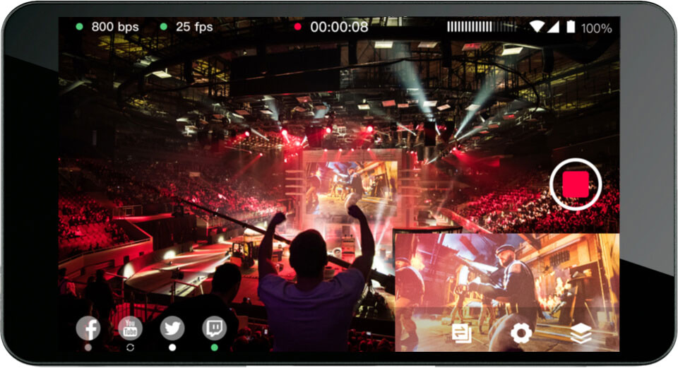 7-Inch Touch Screen as monitor and control panel Various kinds of capture streams up to 1080p, such as DSLRs, Drones, DVs, GoPro and etc. ~Multi-camera Production, up to 5 video sources switching ~Cross Platforms Streaming, support Facebook, Youtube, Twitch Live, and RTMPs ~SD Card as a video library, support local video reading and recording while streaming