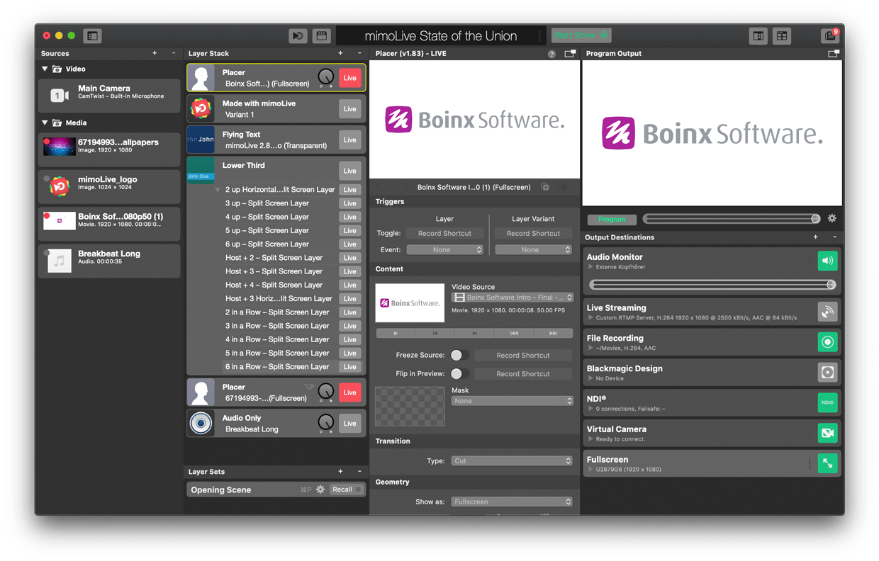 We live in an incredible time. While in the past those who could afford the expensive technology and specialized crews were gatekeepers keeping you from spreading your ideas, with mimoLive, now you can build and run your own TV studio at home, in your school, church, company, or organization, broadcasting whatever is important to you.